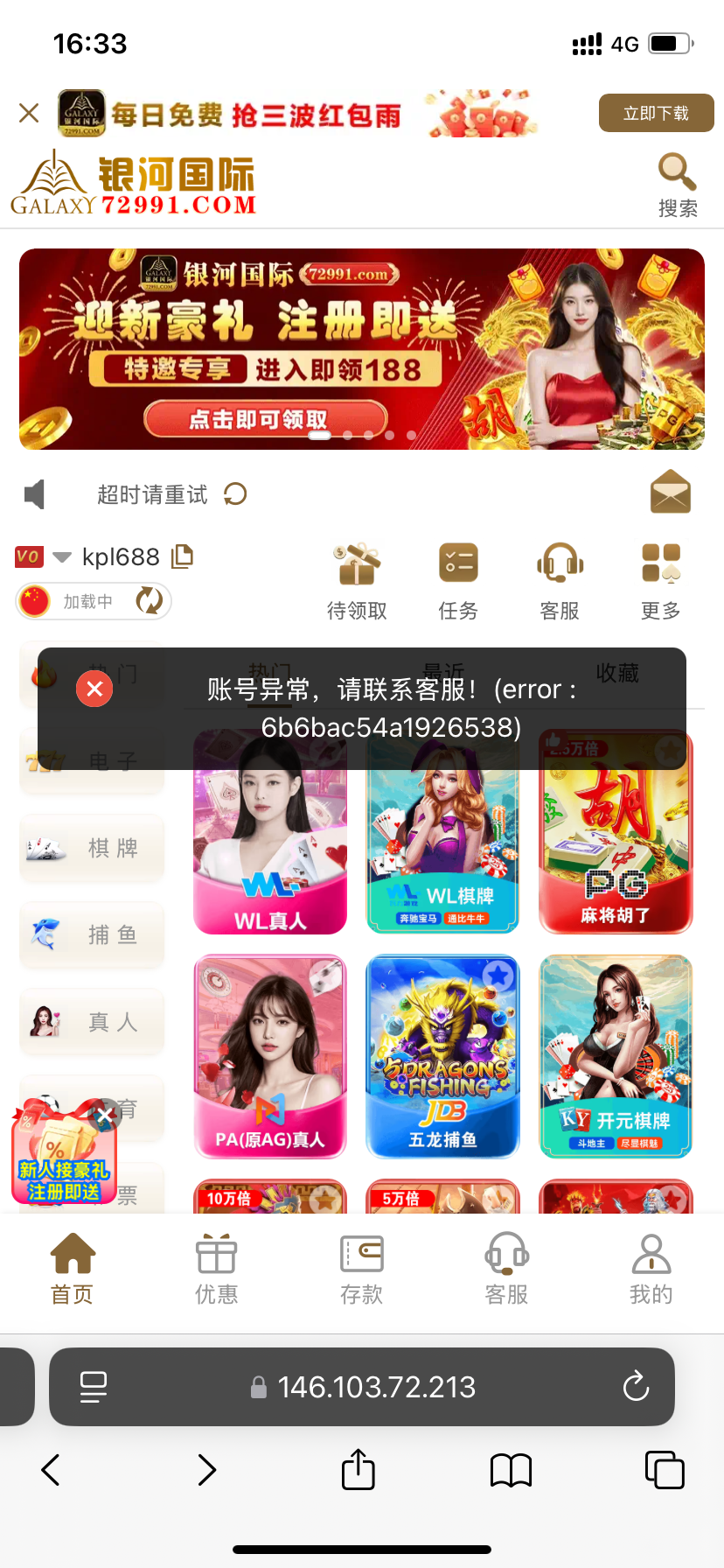 之前注册过没领到注册彩金可以登录下试试了,之前看老哥帖子注册没给,卡都没绑就退了,今天刚接到回归电话,连注册也一起给了网址72991.com