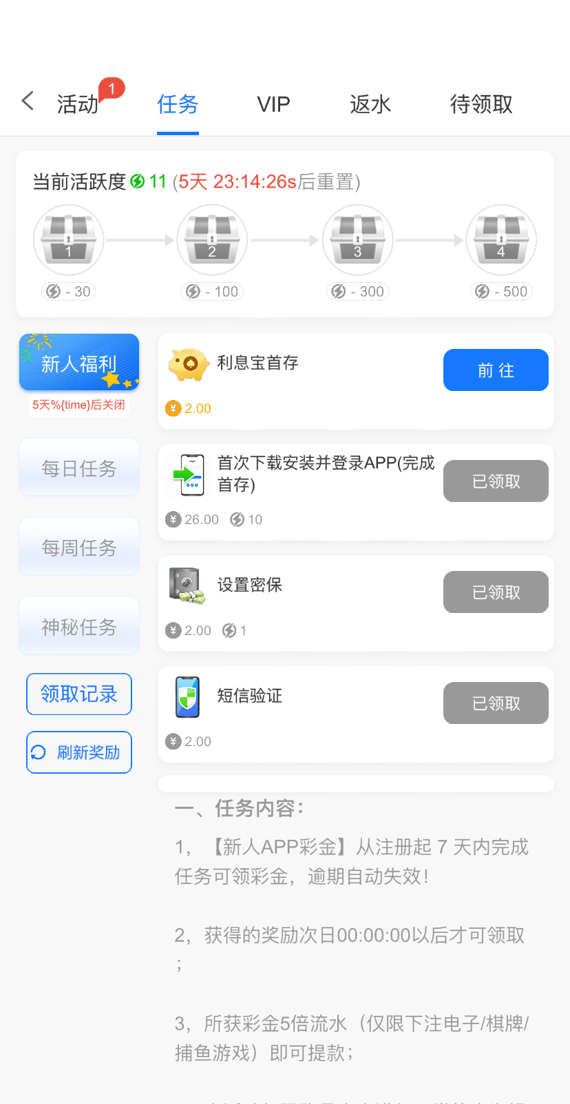 没有 历史充值100+ 七天未充值可申请以小博大20+23 不用去了