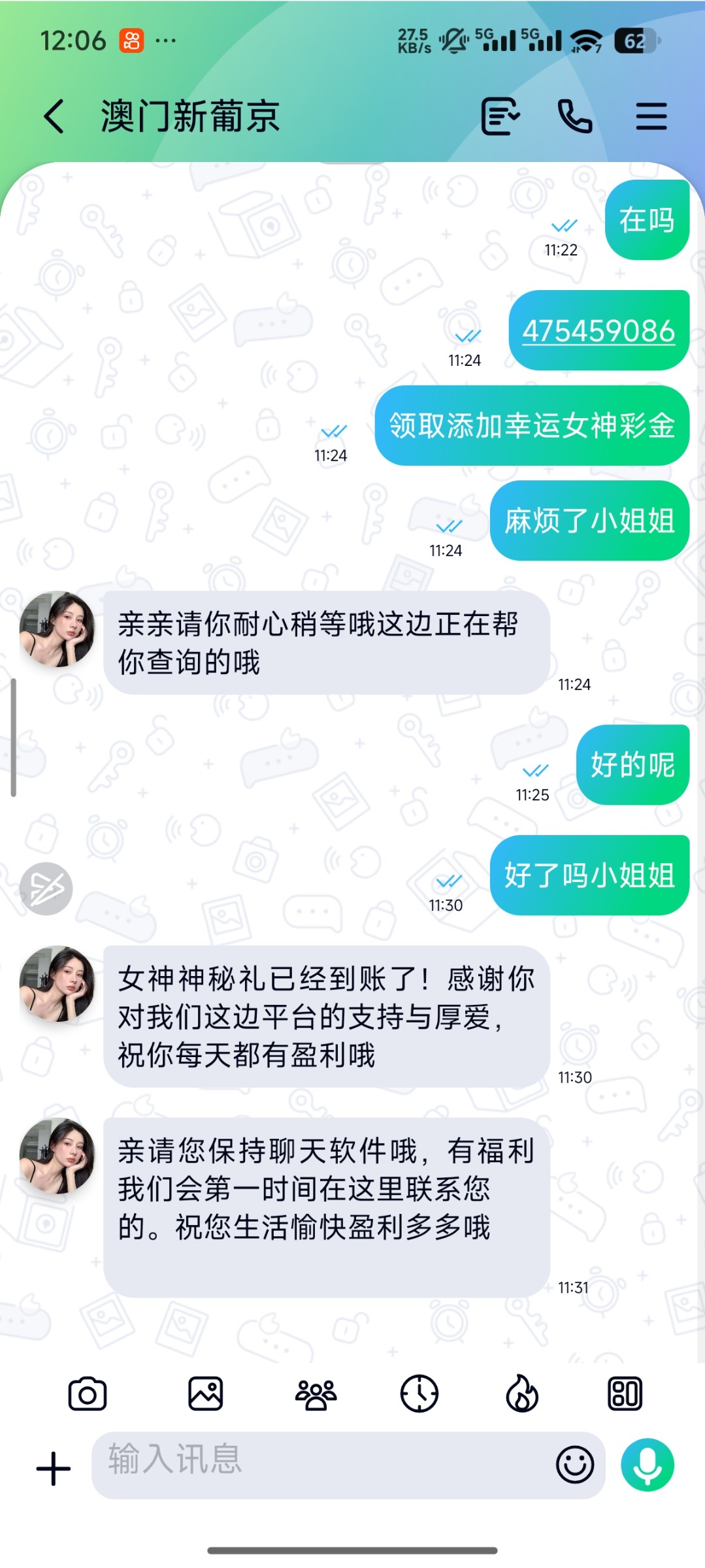 a528378916 牛逼 冲了十块 我主动去找的那个幸运女神 碰到了
