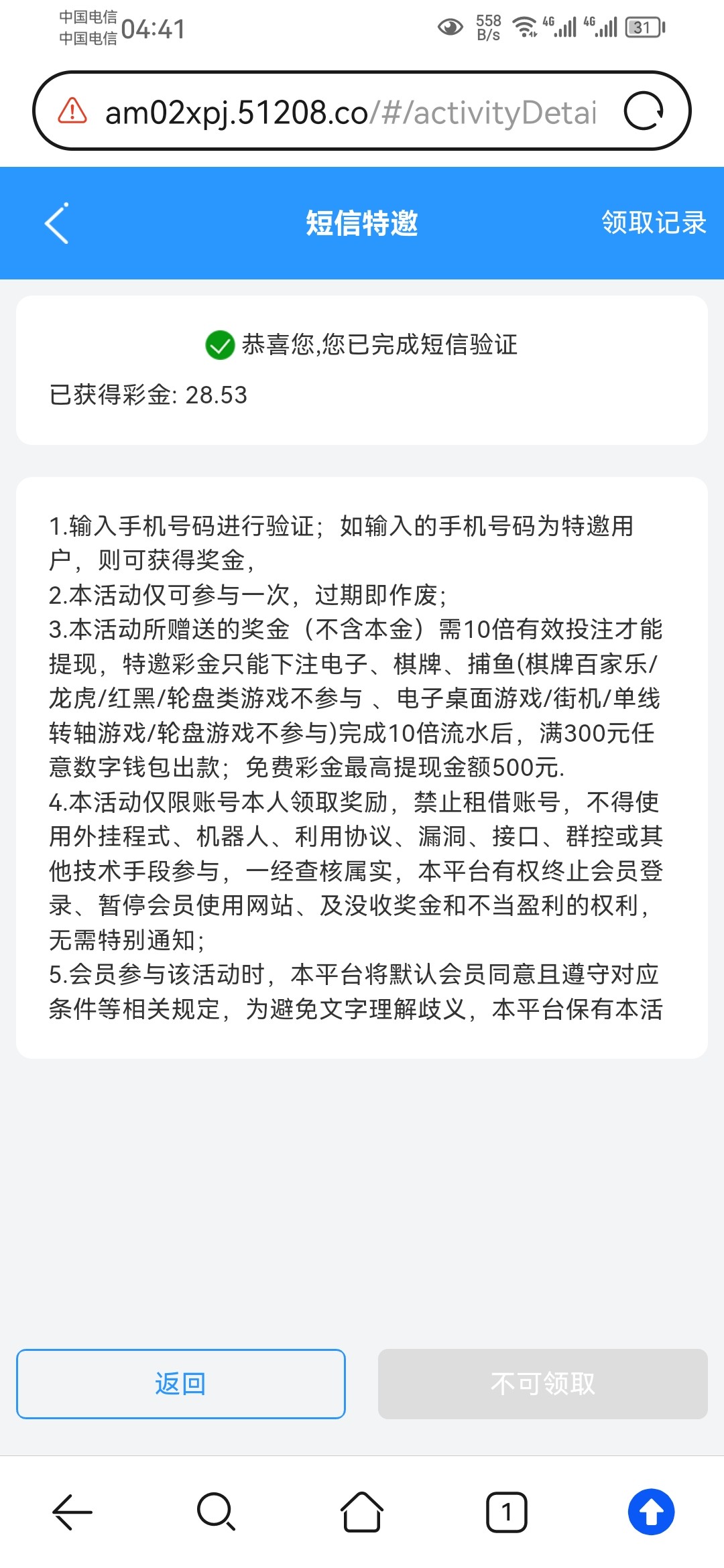 这个是真纯忽悠人啊,接完验证码,再整个不在活动范围内