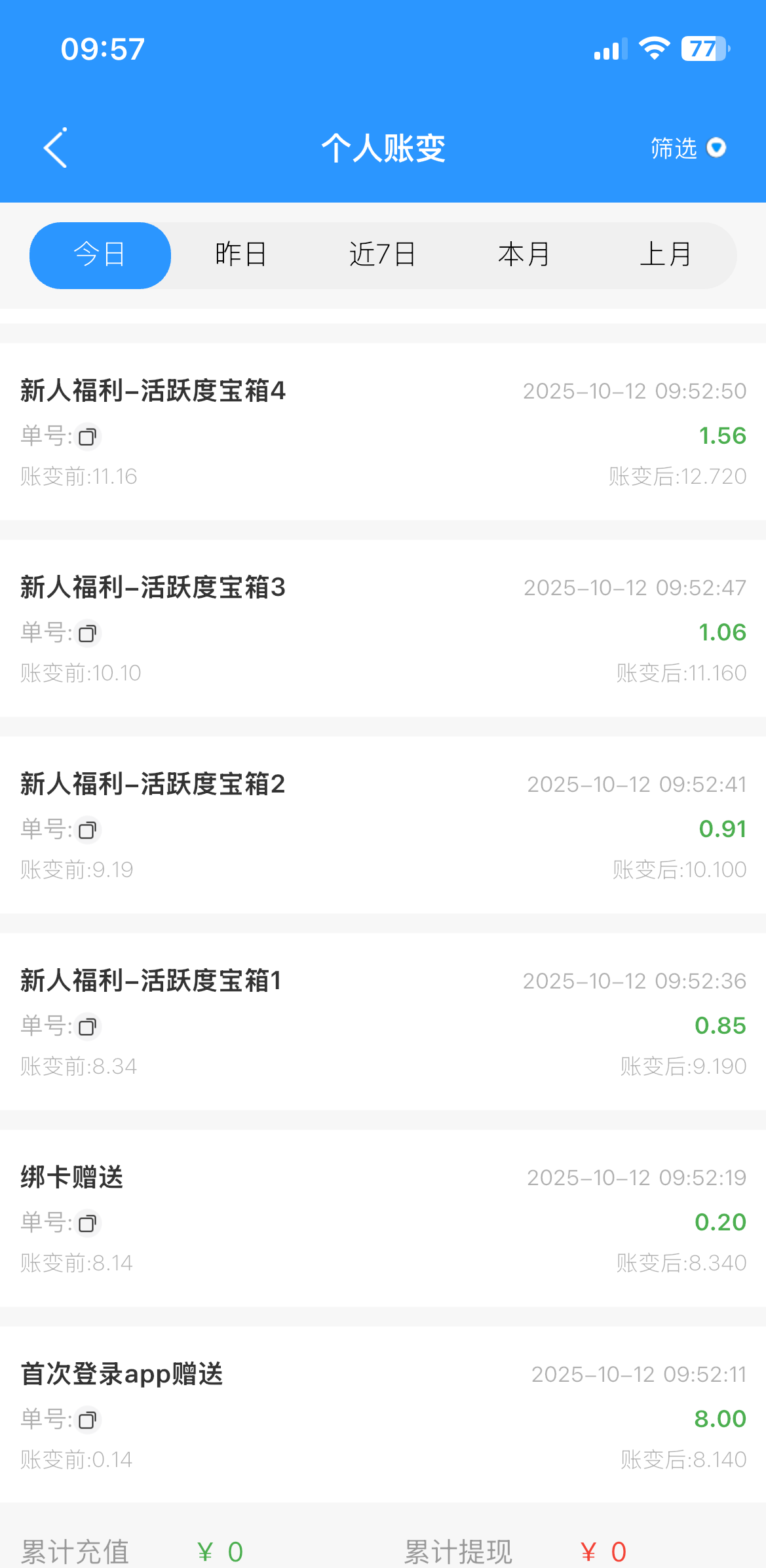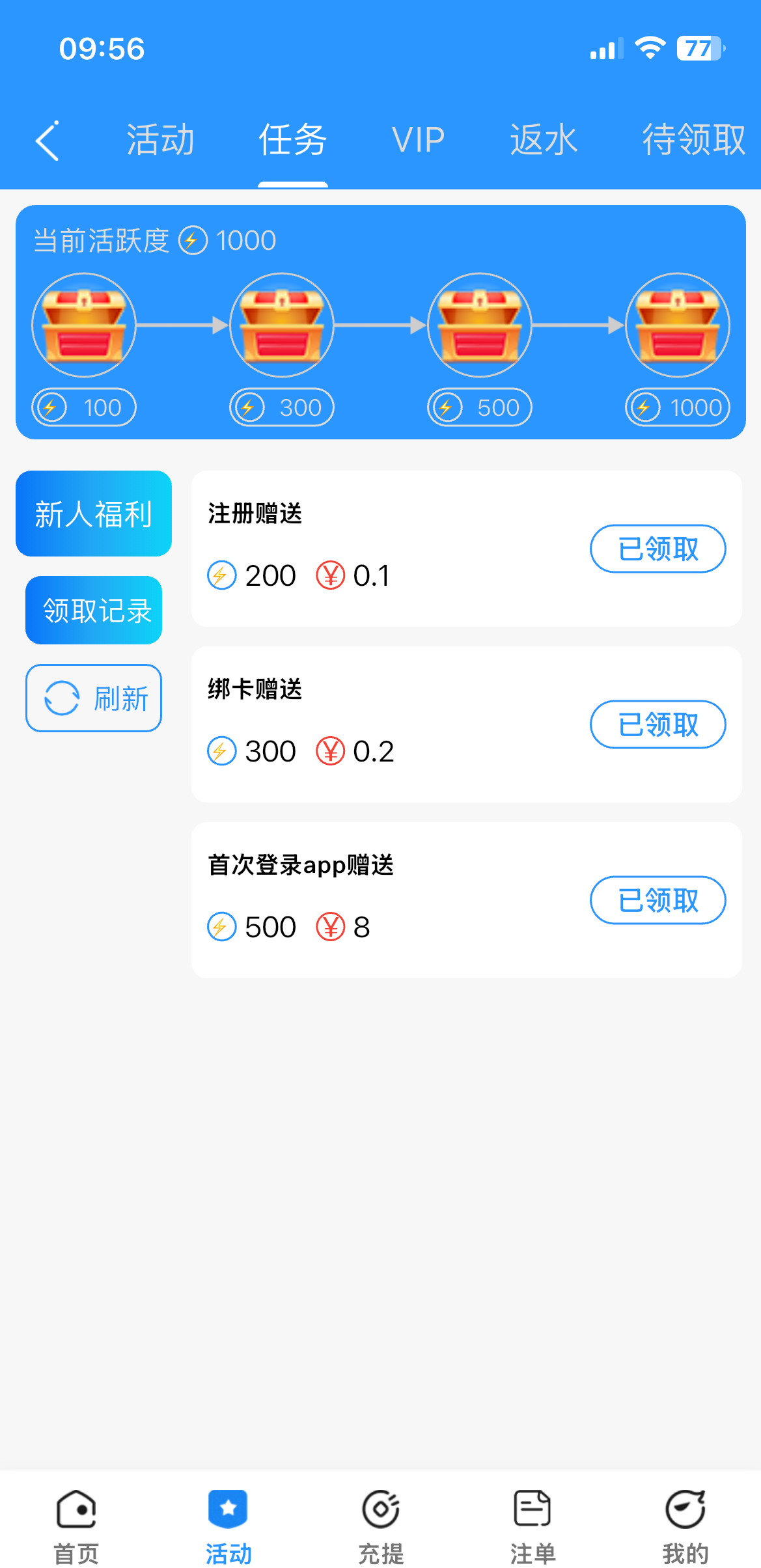 领了28.38一点碧水补给我