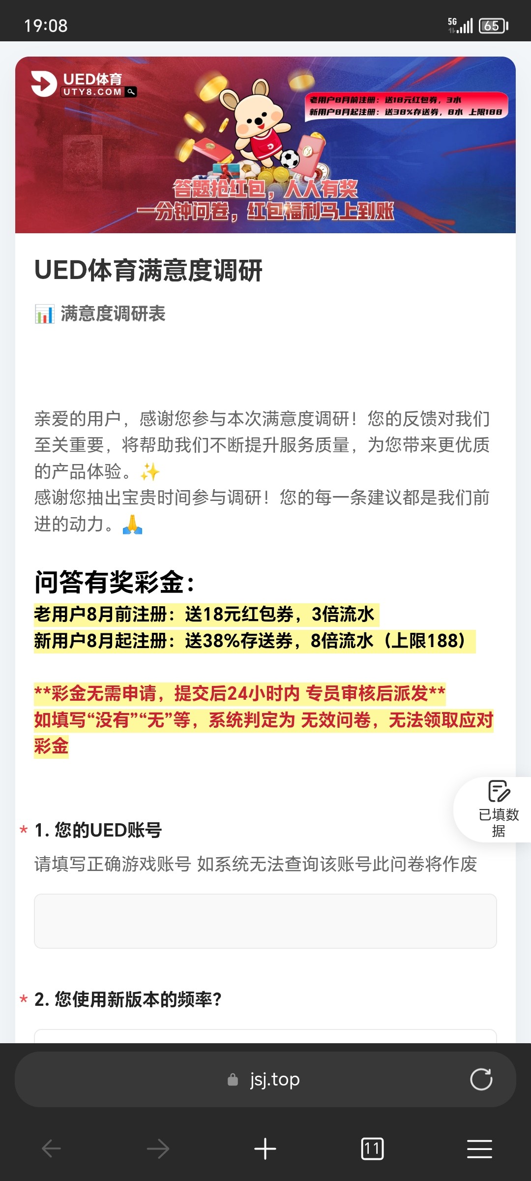 【UED体育】问卷调查彩金