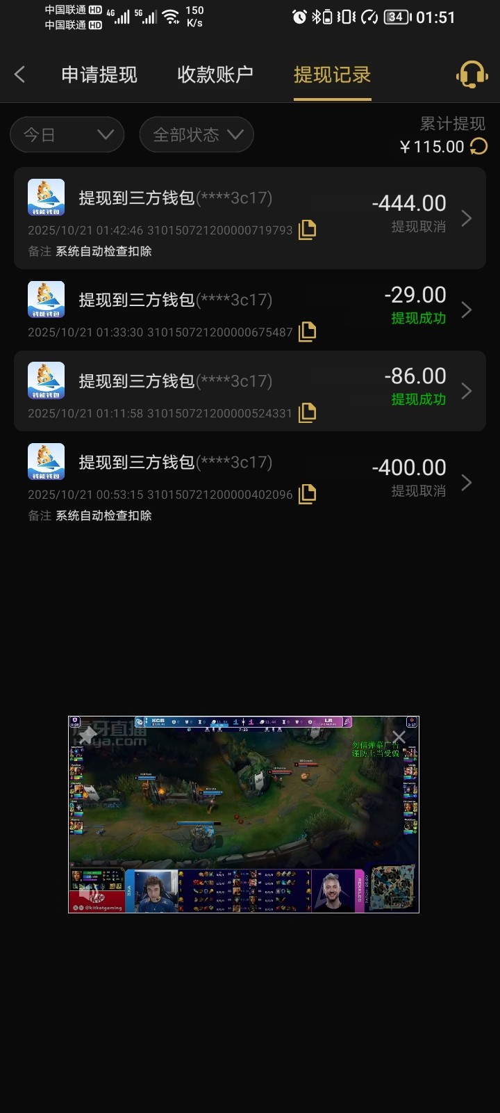 提现直接扣了,充值166两局到500多提400直接给我扣了,还有一百多可能已经下注了所以没扣,赢了到300多去PG买免费留了20多提现给我了以为不会扣了,免费到4000多又给我扣了