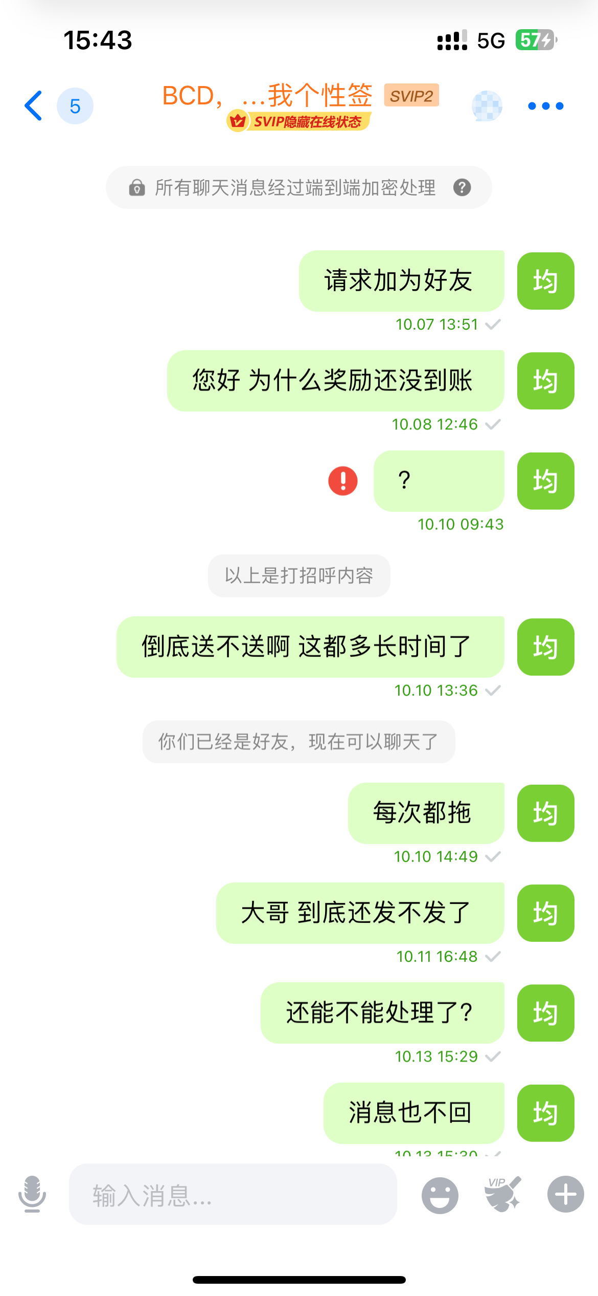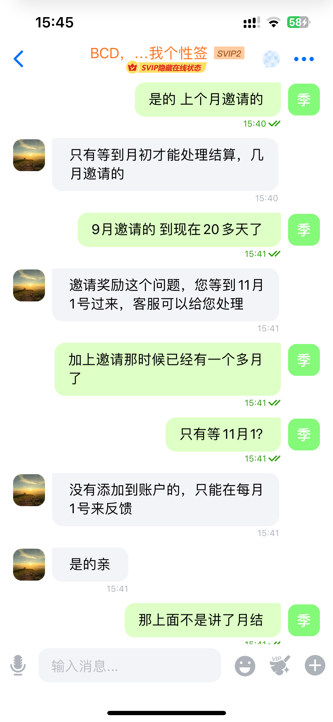 关于bc贷的傻逼客服 老子九月份邀请的 一直不回信息 到现在换了个小号 他说我没有月初反馈 我反馈他妈了个臭逼 大家有没有遇到这傻逼客服