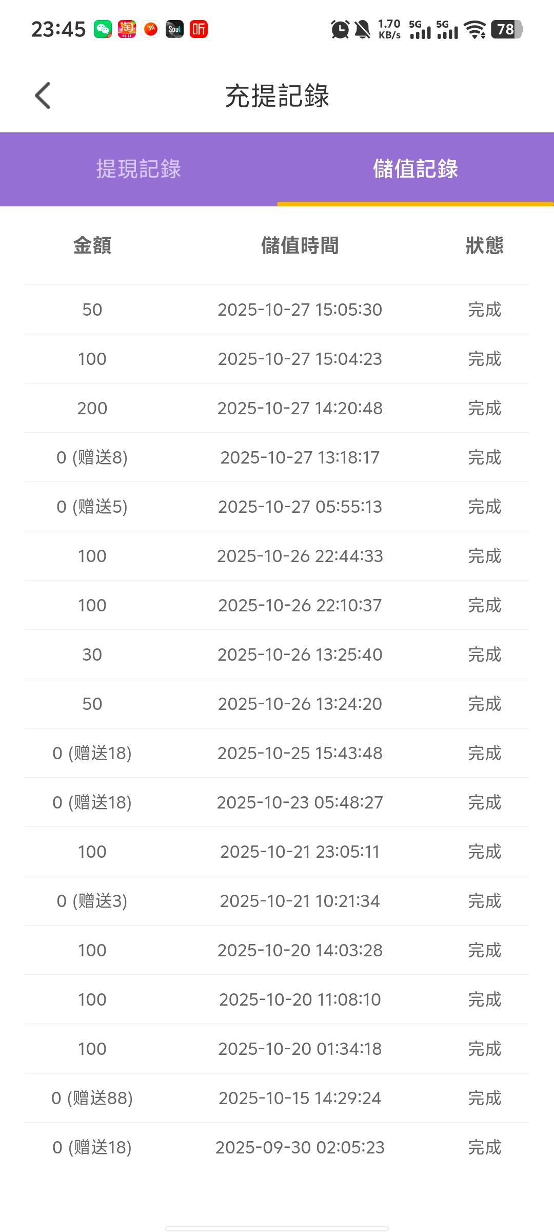 我就是我不一样的烟火 第一次送了38,100秒出,后面卸载了登录上去看有88,然后提了300,然后充值了200出了2300还行吧。