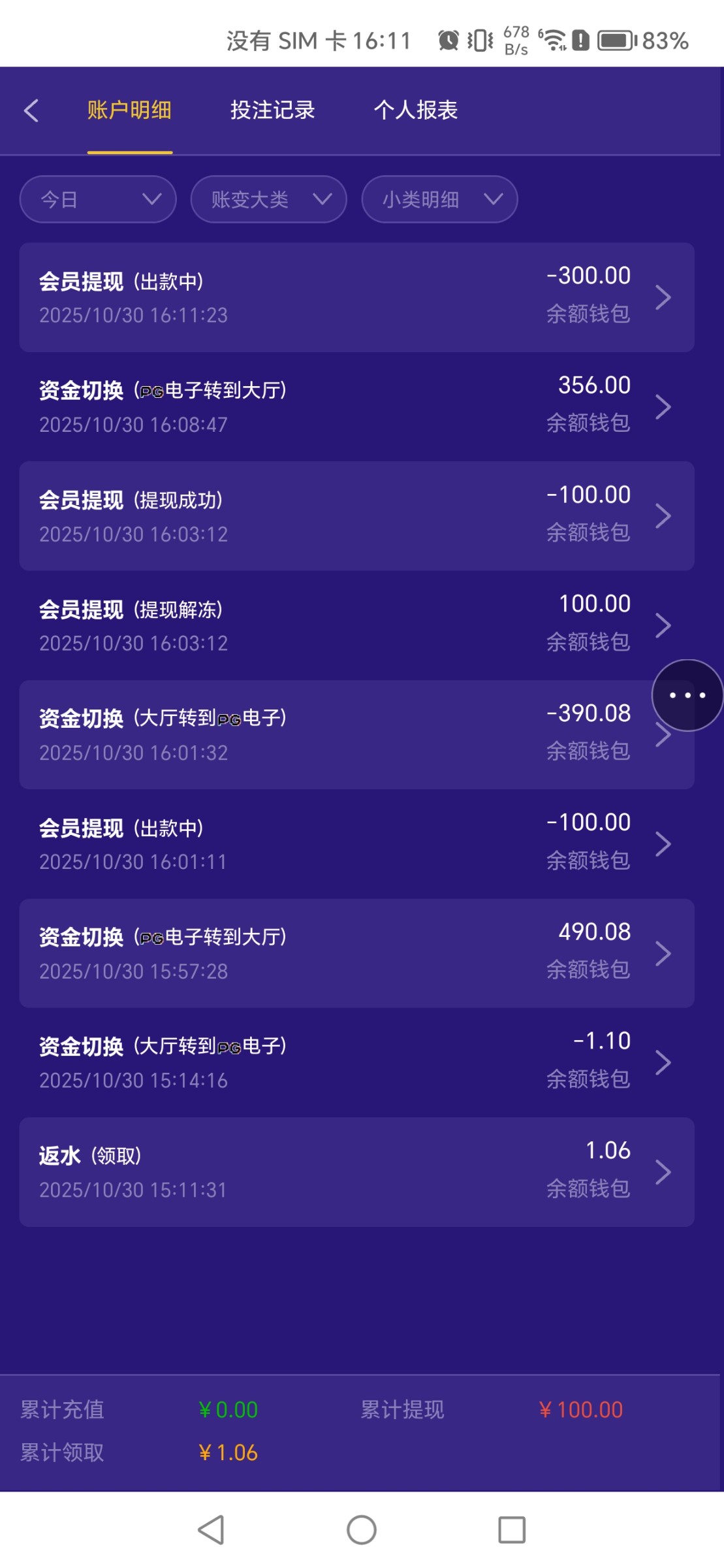 拉斯维加斯一毛钱没充过,反水一块钱第一把就胡赢上500牛不牛逼,还真能提现呢,400留100在里面玩,哈哈