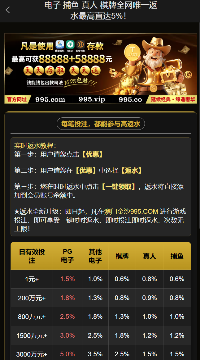 ⚜️【超高返水】电子棋牌捕鱼,1元起返水1.5%,最高返水5%!