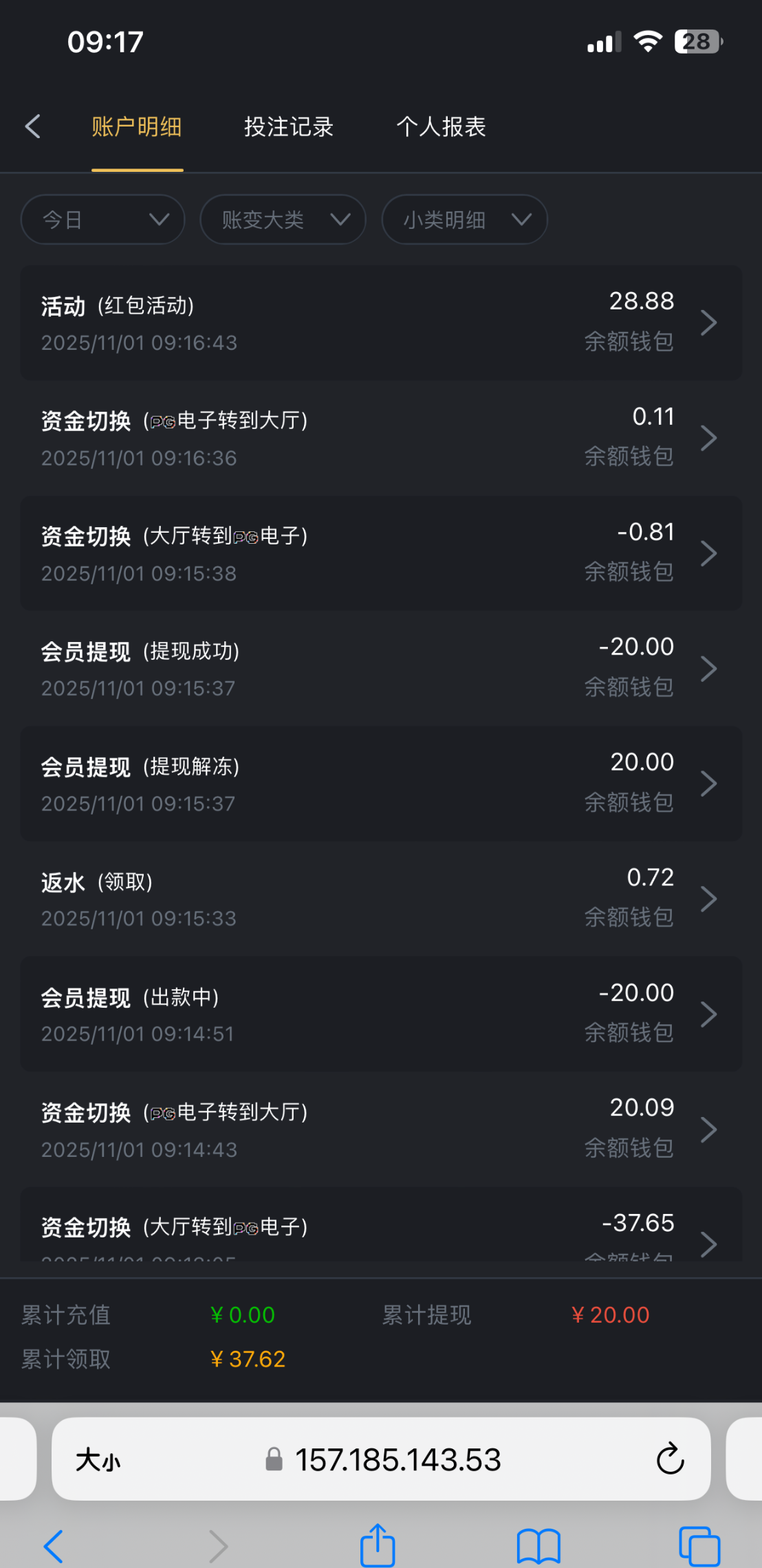 狗逼台,几个月前以小博大输了一千出,流水就三千多。几个月没送过一分钱