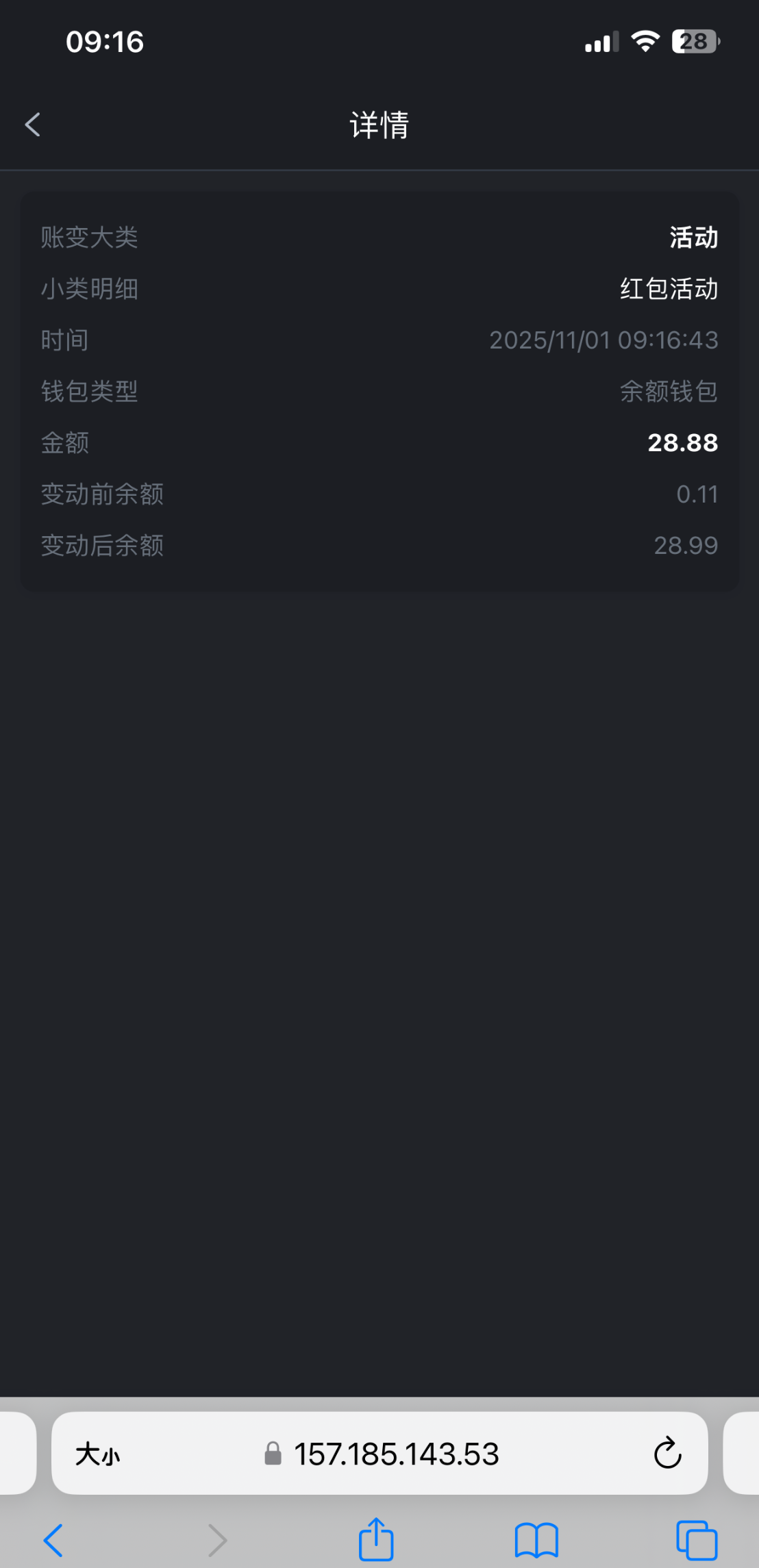 他发的骗人的,这是奖金池红包,每日投注可以领,1.88 3.88 28.88 38.88 188,他就是抽了个28.88然后过来发帖骗人说是幸运红包,你们别信