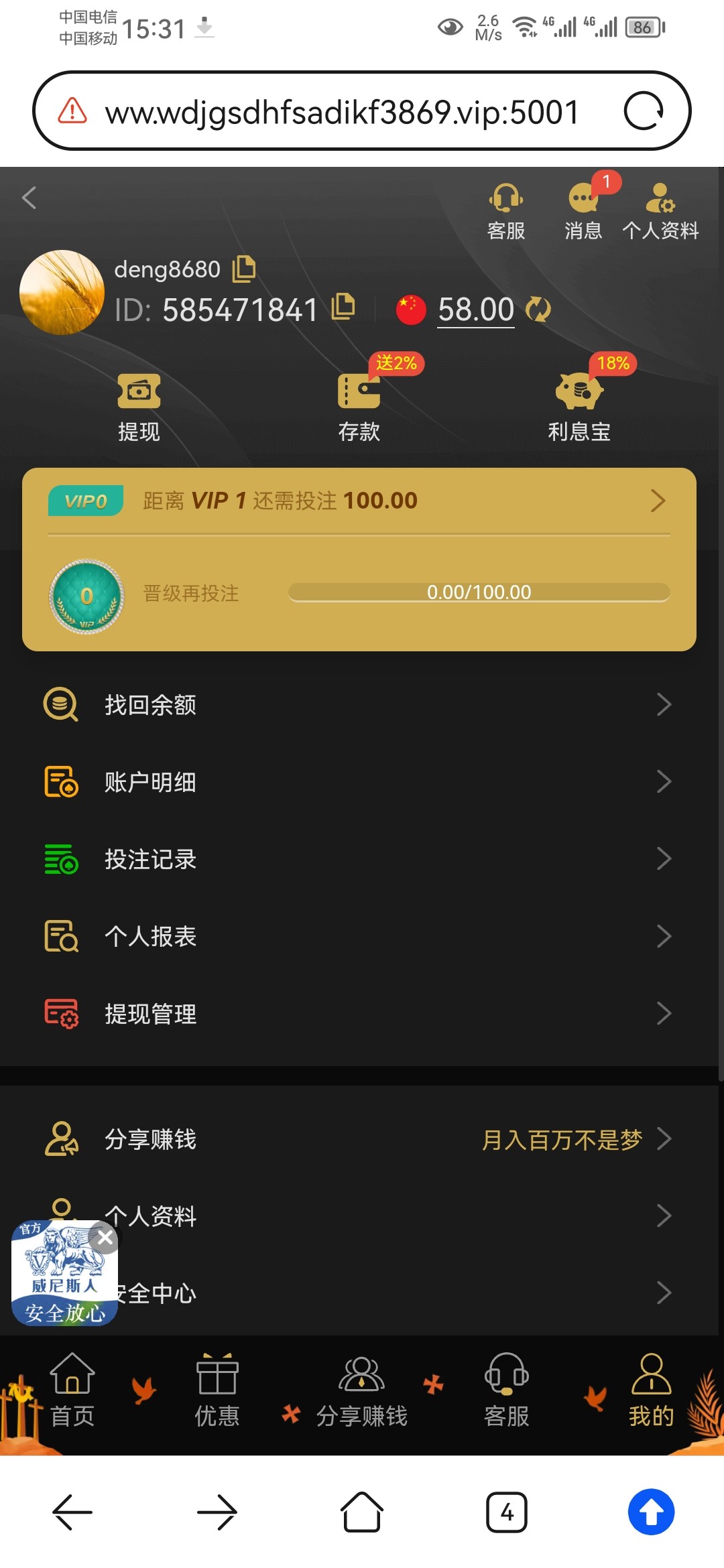 枫枫 碰瓷58要充值100才能玩充值一百彩金加本金有180得吃600