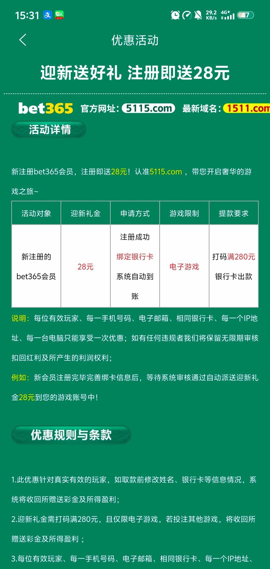 【BET5115】注册彩金