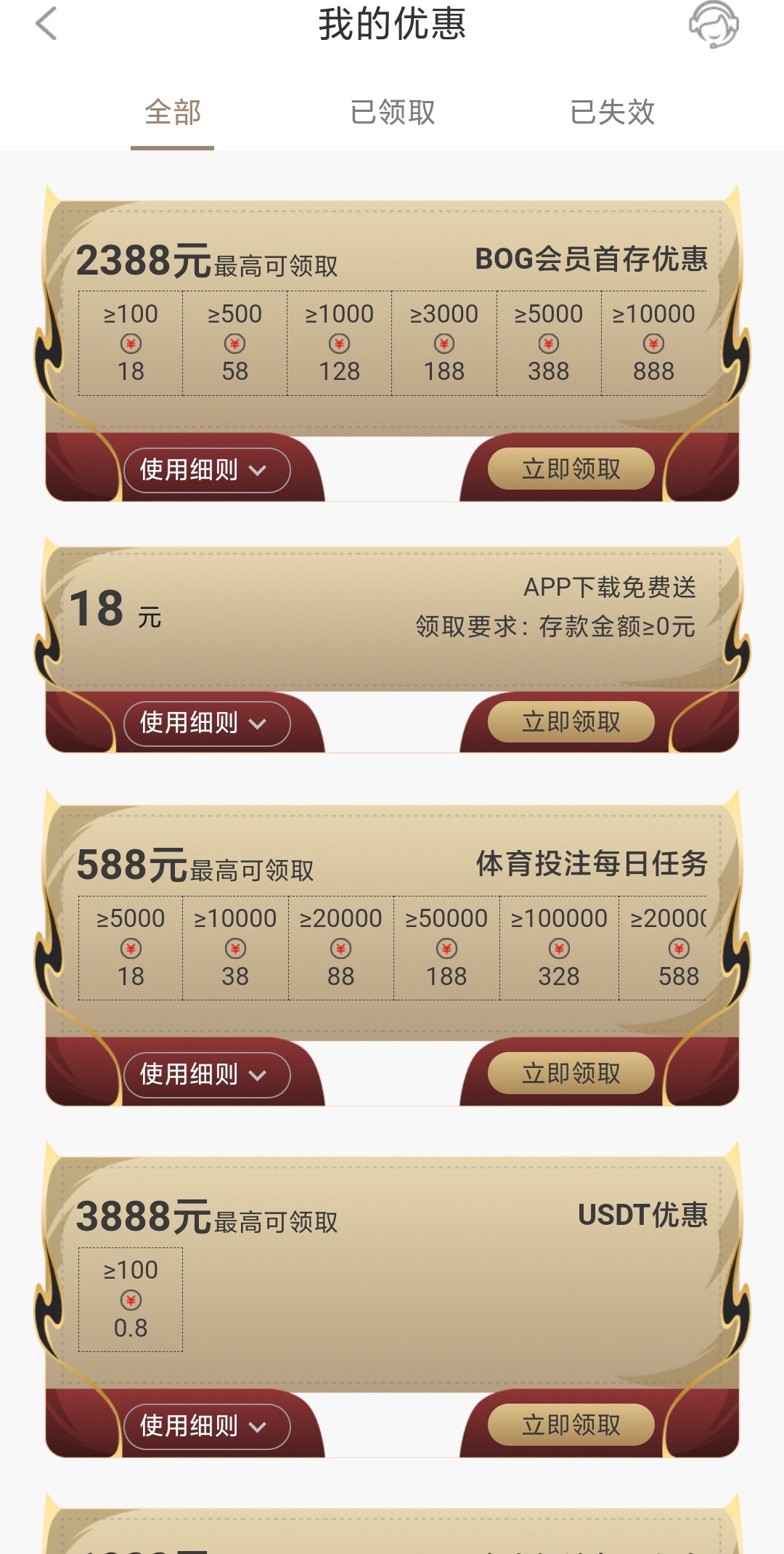 登录去 右下角我的-我的优惠 找到彩金18的领取 等待审核通过,然后打到100提现
